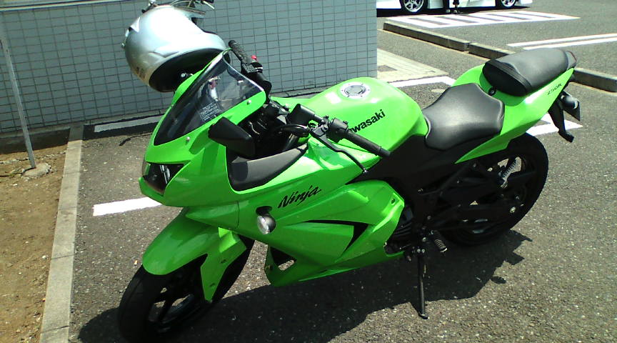 あ…ありのまま今日起こった事を話すぜ! 「おれは山中湖を目指していたと思ったらいつの間にか厚木に着いていた」 な…何を言ってるのかわからねーと思うがおれも何をしていたのかわからなかった… …ヤビツ峠を越えるあたりまでは順調だったのにねぇ。 今日お借りしたエモノはカワサキNinja250Rです(写真)。 パラツインでパワー不足は否めないけど乗りやすいバイクでござんした。 アマガエル色はどうも好きになれないけど…。