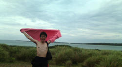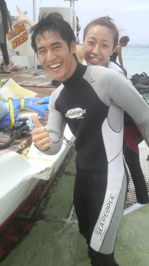 二日目! 昨日までの雨の予報は、一夜明けると午後6時まではずっと晴れという神懸かった観測に。 よだれ姫(エコさん、晴れ女)、恐るべし。 今日は朝からダイビング! 港からボートに乗って、一気に無人島へ。 そこでシュノーケリングの講習を受けたり、アクアラングの使い方を覚えたりしました。 そこから別の島に移動し、カレーを食べてしばらく散歩。 カヤマ島の標高19mの山頂からは360度の海が見えました。 で、ポイントまでビューン。 生で見るサンゴ礁、ハンパねぇ。 昨日のグラスボートから見た景色がさわれる場所に! うっわ!!(*´Д`) 赤・青・黄色のサンゴの隙間から見たことない綺麗な魚がコンニチワですよ!! ニモ(クマノミ)だ!!ニモ!! そんなかんじで僕ら4人一組で潜ったんですけど。 水中では喋れないので、コミュニケーションの手段としてハンドサインが決められてるんですよね。 普通「了解」を表す親指を立てるサインは「浮上(上に上がれ)」を表すので、了解はOKサインを作らないといかんのです。 一通り海の底を散策した後、最後のインストラクターさんとのやり取り。 (メッセージボードで) 「ここのサンゴ礁、あと40年くらいしたらなくなっちゃうかも…/それまでにまた来てくれますか?」 おれ(OK!!) ツネ(OK!) きょんちん(う、OK!) エコさん (上に、行かせろ!!) っていやいやいやいや!! 僕、思わず二度見しましたがな!! きょんちんは一瞬間違えてすぐ訂正したけど、エコさんは何の迷いもなく親指を上に突き立ててました。 大川さんはやはり神懸かっている。 この時に限らずインストラクターさんとの軽妙なやり取りで何度も「wwwwwwww」ってなってしまい、たくさん気泡を吹きましたとさ。 写真がぜんぜん撮れなかったのが残念…。 石垣島に戻ってから食ったペンギン食堂のギョーザが絶品でした。 今日もほぼイキかけました。 ちなみに下の写真は石垣島でしか売ってない(多分)乳酸菌飲料、ゲンキクール。 意外に飲んだことない味だと思ったけど、ツネ曰く 「ガリガリ君を溶かした味」 だそうです。