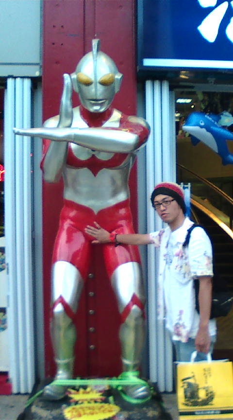 3日目ー。 昨夜は遅くまで飲み明かしたので朝ひじょうにツラかったけど、8時前にエイッ!!て起きました。 朝食を食って、車を出してツネと町へ。 昨日買えなかったペンギン食堂のラー油を買いに。 エコさんがいなかったので雨が降っちゃってたけど(天候を左右する女)、並んだ末ちゃんと買えてよかった。 午前中にレンタカーを返却し、飛行機で石垣島から沖縄本島へ。 さらば石垣島! すんげー楽しかった!! 沖縄本島では女性陣と野郎共に分かれて行動。 女性陣は初日のリベンジのパラセーリングへ。 野郎共の向かった先はこちら。 ↓ はい、どん亭どーん! (どん亭とは本州には川崎市に2店舗しかない牛丼チェーン店です) 平日の昼時ってこともあり、会社員やら学生やらよくわからない職種の人々でごった返していました。 沖縄限定メニューの沖縄そばとミニ牛丼が付いて550円。 安っ。 うまっ。 そして 多っ。 ぱっつんぱっつんになりました。 そこから国際通りを移動して平和通りに入り、塩ソフトを食ったり。 こいつがまた大ボリュームで腹が膨れる膨れる。 今日は那覇市内をプラプラしながら胃をもたれさせる、そんな日。 ぶくぶく珈琲でまったりできたのは良かったです。 写真は街角で見つけた猫を写真に収めようとするツネ。 明らかに嫌がってる気がするけど(笑)。 いたるところで猫を見たけど、沖縄の猫はぜんぜん人間を怖がらなかったなぁ。 銀色巨人の股間を押さえるツネ。 腰の引け具合が絶妙。 そんなこんなでヒマを持て余しながらも夕方にエコさんきょんちんと合流し、居酒屋で今回まだ食えてなかったゴーヤチャンプルーやらミミガー、海ぶどうなんかを食べて空港へ。 なんかあっという間。 帰るのがやんなるぐらい楽しかったです。 マジで。 心のふるさとだな、オキニワ。 <本日のおまけ> ナベツネ君からダイビングの時の写メをもらいました。 きょんちんと写ってる僕です。恥ずかしいので小さめに。 しきりに手で浮上を促していますが、ここは陸上ですよ。