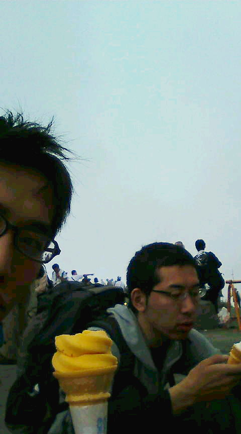 午前5時05分、頂上到着。 エイッドリアァァァァン!! (ロッキーなかんじで) 雲が出ててご来光は微妙だったけど、達成感が半端ない。 本気になれば全てが変わる!! とりあえずお鉢巡り中。 火口がとにかく大迫力。 最高峰3776m地点を踏んで、下山! 下りもまた人生だ!!